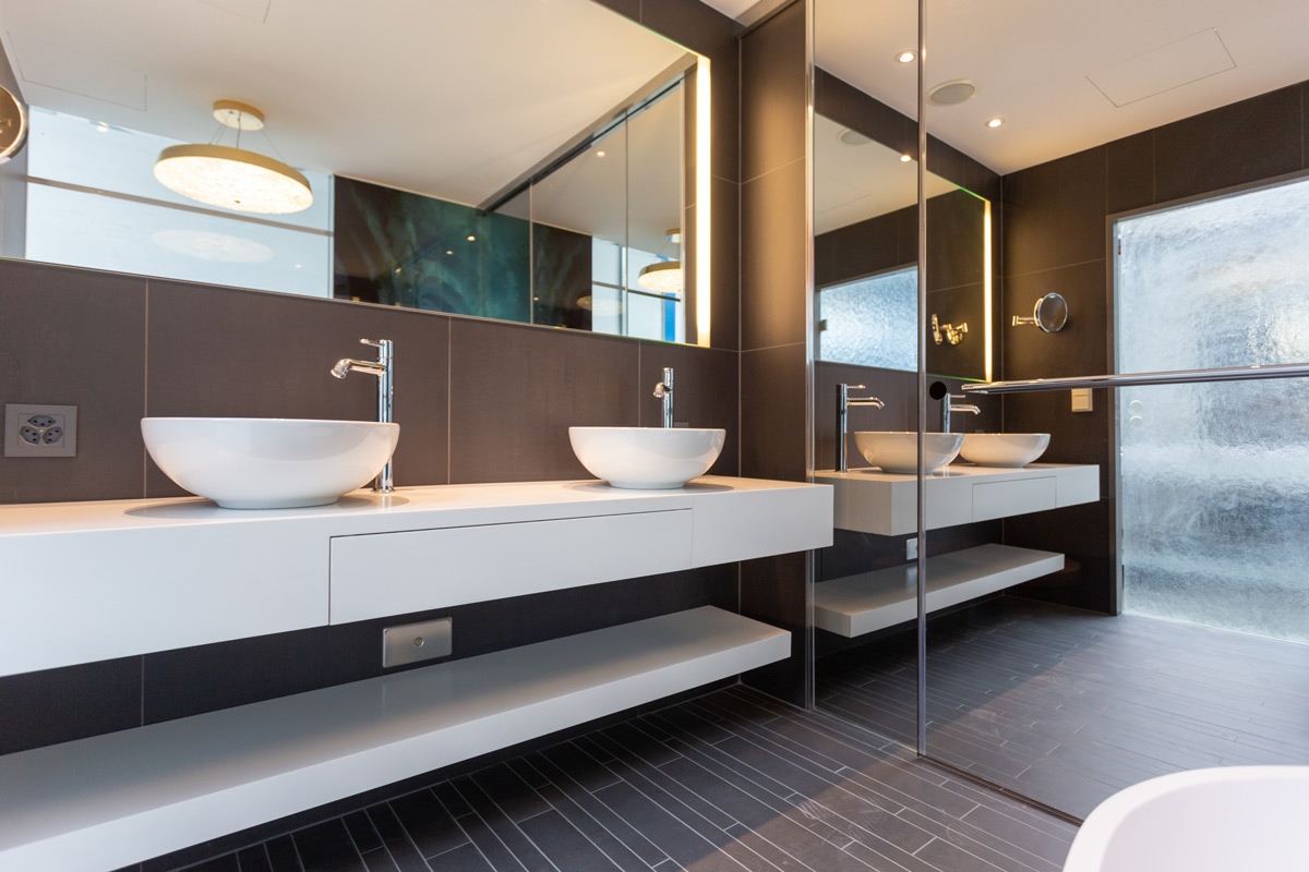 The Grand Kameha Zurich is a 5 star superior hotel in the heart of the city. The rooms are designed as a treasure chest with cassette walls and in the bathroom, the mermaid in the underwater world is looking for treasures. The 225 bathrooms supplied by TAIROS differ in size, wall design and connection type. In addition to the mirrored shower enclosures, the gold-plated shelves and the glass art in the shower are particularly noteworthy.n.