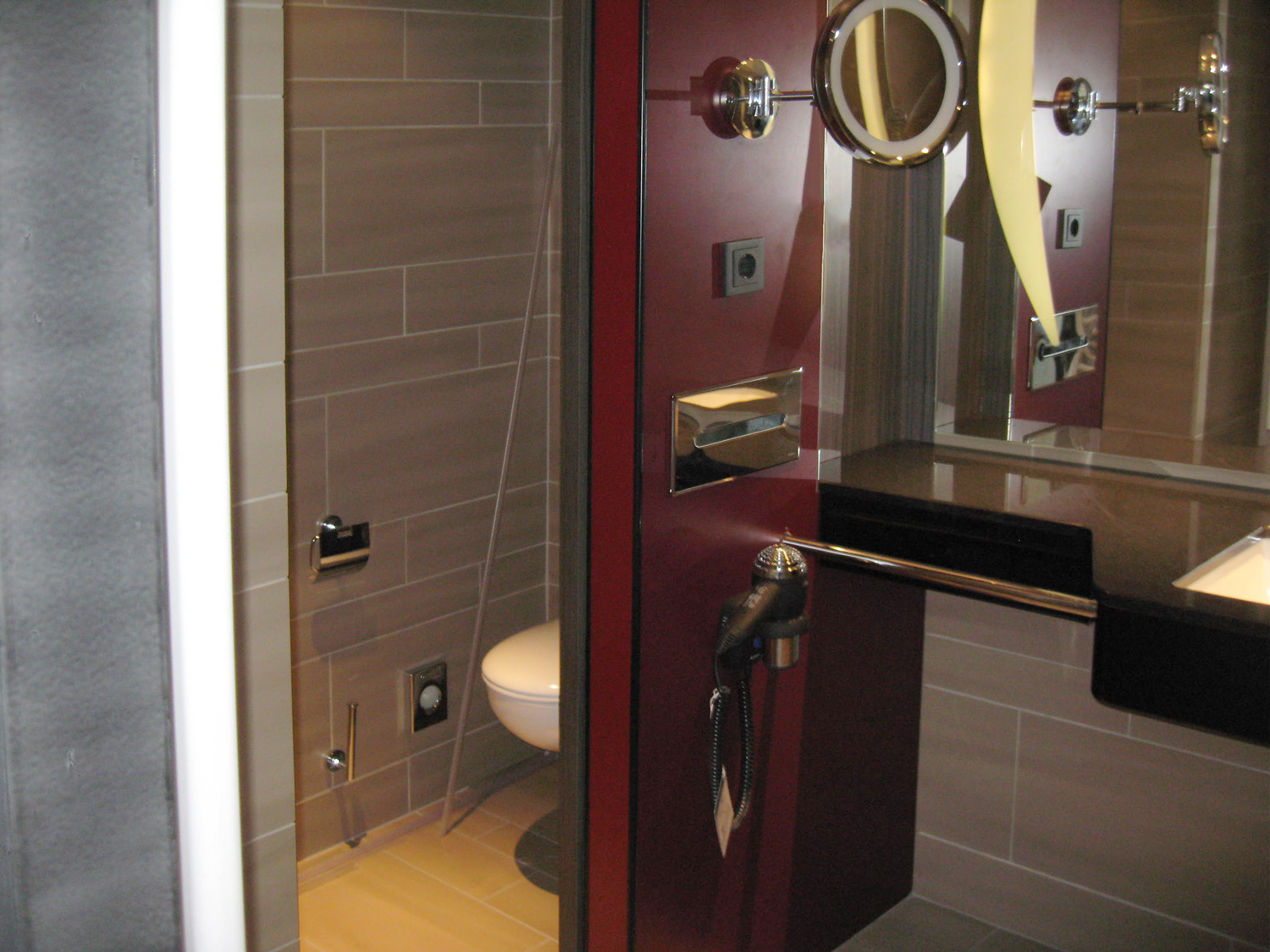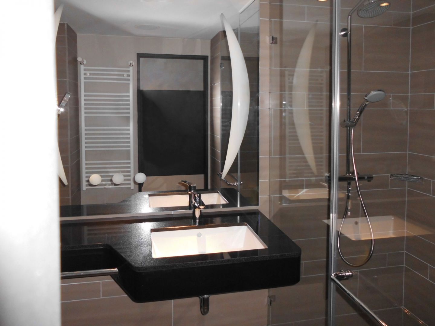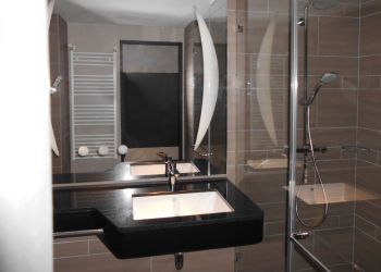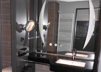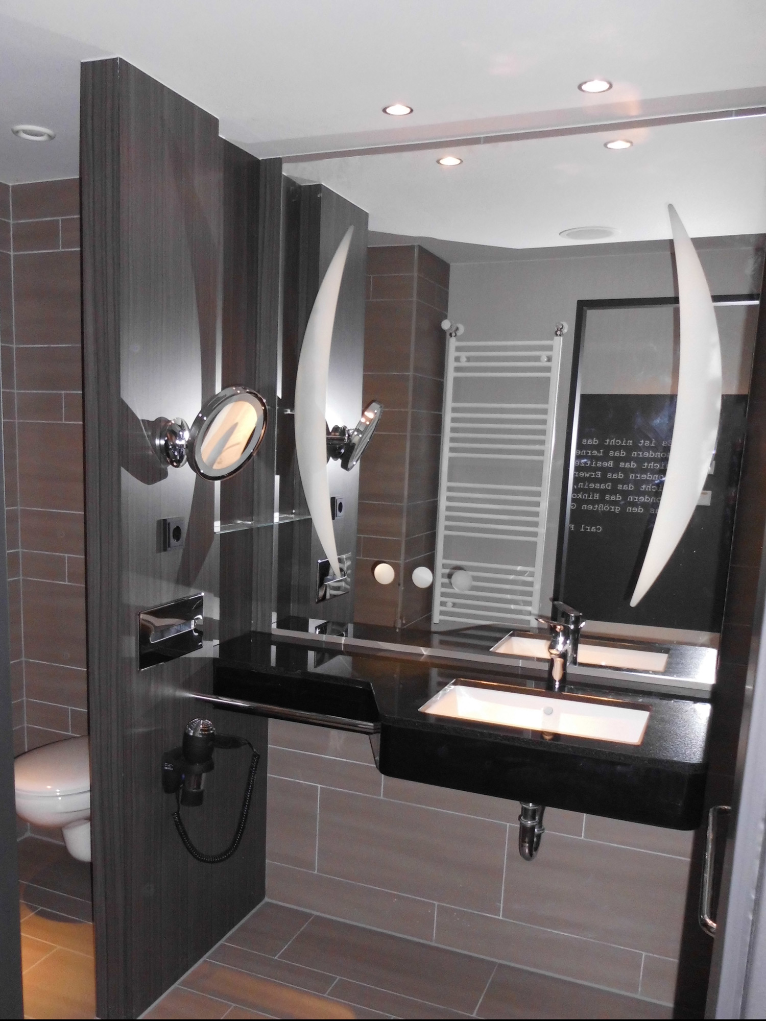 The STEIGENBERGER® Parkhotel Braunschweig is located in the middle of the Bürgerpark near the historic old town. For the 180 rooms and suites of the Parkhotel we have delivered 163 bathrooms in very different designs. The visual highlight of the bathrooms lies in the HPL-coated partitions, the elegant vanity combination and the very attractive tile mirror.