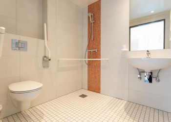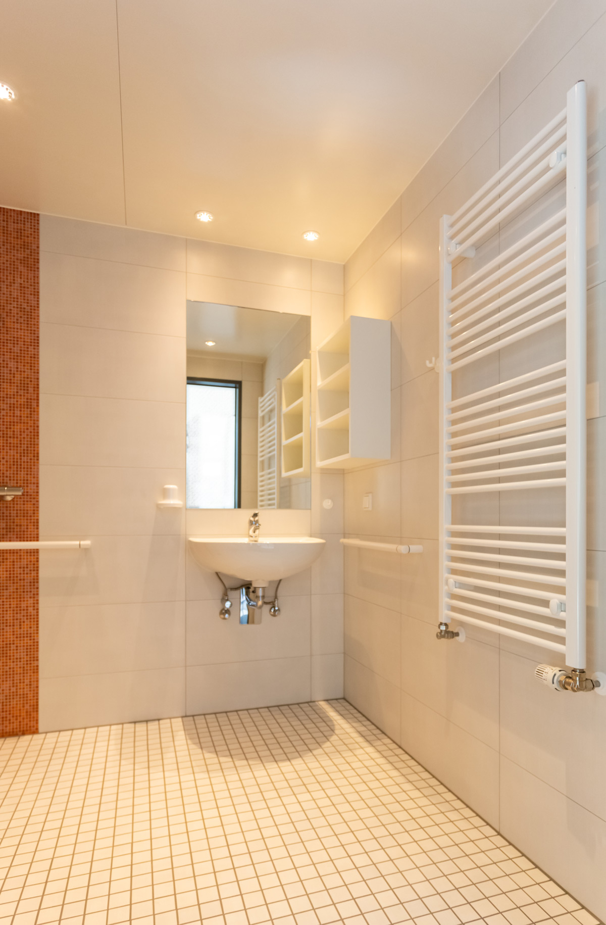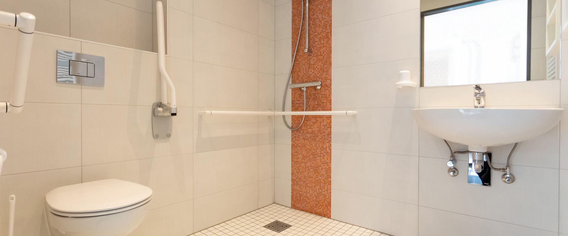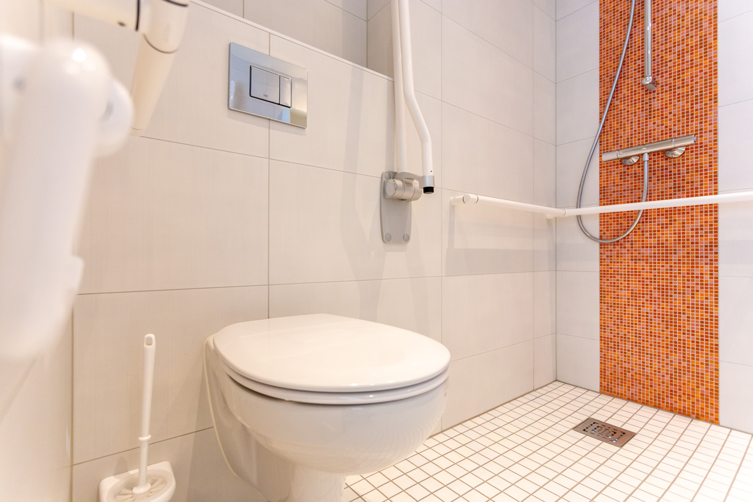 Mit 74 TAIROS Fertigbädern ist das Kursana Seniorendomizil in Straelen ausgestattet. Bei den Bädern wurden kleinformatige Bodenfliesen und großformatige Wandfliesen kombiniert. Optischer Glanzpunkt ist ein senkrechter Streifen im Duschbereich mit farbigen Mosaikfliesen. Auch bei diesem Bauvorhaben wurden bei geringer Stückzahl verschiedene Badtypen umgesetzt.