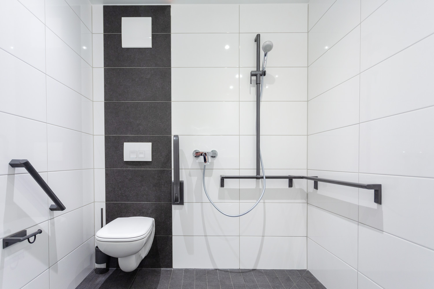 Für die Seniorenwohnlage Convivo Park in Einbeck haben wir insgesamt 111 Bäder geliefert. Die Bäder bestechen durch die dunkelgrauen Boden- und Akzentfliesen. Diese sorgen in Kombination mit den anthrazitgrauen Accessoires für ein wohnliches Ambiente. Gleichzeitig wurden die Anforderungen an das barrierefreie Bauen gemäß der DIN 18040-2 berücksichtigt.