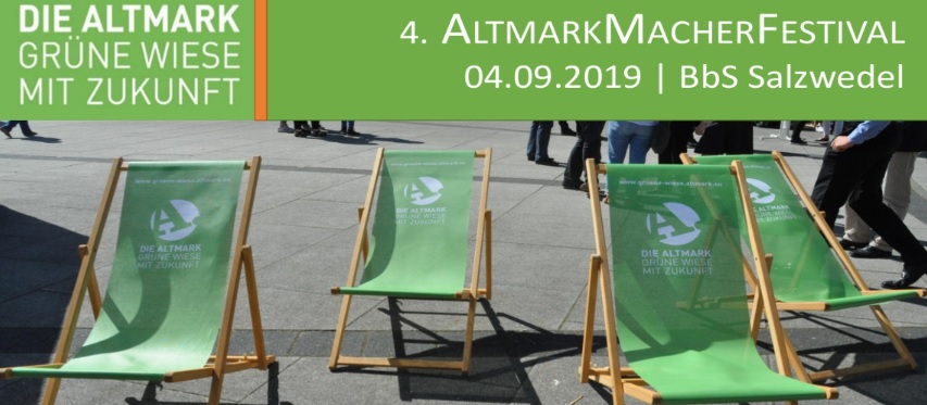 Unter dem Motto „selbst-bewusst-gestalten“ findet am 04. September 2019 das 4. AltmarkMacherFestival auf dem Gelände der Berufsbildenden Schulen in Salzwedel statt. In diesem Jahr sind wir dort erstmals mit einem Stand vertreten. Wir freuen uns über die Gelegenheit, allen Interessierten Einblicke in unser Unternehmen zu gewähren und laden Euch herzlich zum Besuch unseres Standes ein.
